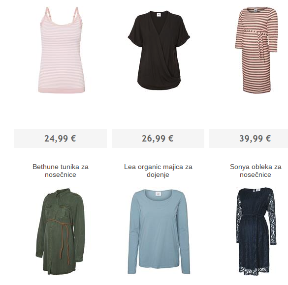 Nasprotno od tega pa pristašicam naravnega in organskega, lahko ponudite majice za dojenje iz naravnega materiala, petit majice in druga poceni nosečniška oblačila.
